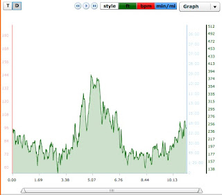 Thursday – Hilly Run: Having recently moved, Lindsay and I are having to recalibrate our standard running routes some, which is a good thing b/c it keeps it interesting “I found a new X miler” or “If you go out to Y and back it’s almost exactly * miles”……yes, this is the kind of nerdy conversation that we share……he says as he hangs his head in acceptance of the realization of what he has become. 🙂ANYWAY….I decided on Thursday it was time to test the heel a little and build up the mileage on the run. The previous week I had done 2 x 4-ish miles and felt pretty good and the heel was responding nicely, so figured it was time to go for a little slow and steady. So I figured I’d go out and get some miles in and find a 10-12 mile route. It turned out to be mostly out and back with a climb at the mid-point…..if that looks like something less than fun….it was indeed.