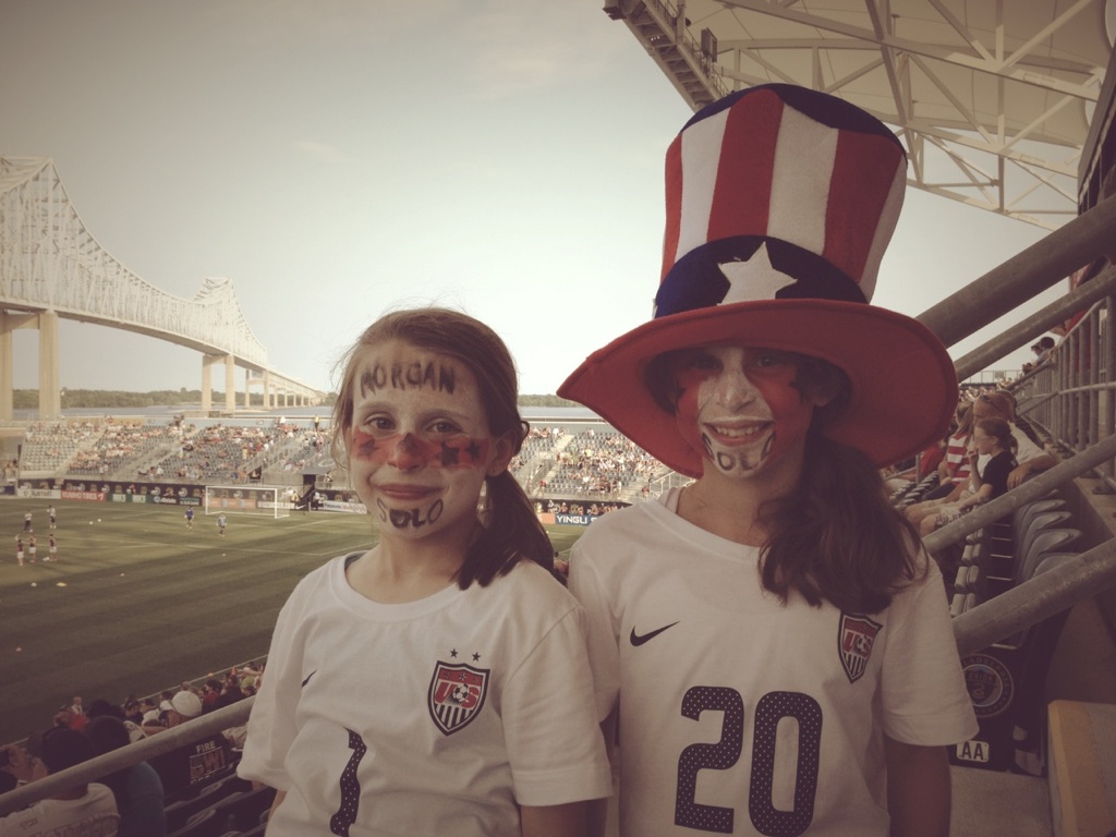 - and my Mom who watched kid #3 while I put in session #2 for the day, another 30 miles on the bike + 2 run b/c Linds and the girls were headed to Chester, PA to watch the US Women’s Soccer team take on China