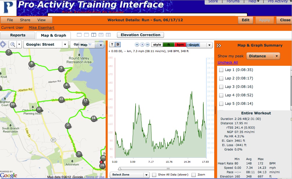 Today I backed up the century ride with an absolute MONSTER run. 18 miles of hills. I hooked up with a few guys who are always up for a long run…..but I don’t think they were really on board with what I had in mind. One of them was targeting 12 miles and the other said he’d be up for 14……which is what my pre-run mapping said it would be. I did give fair warning that I was going for hill work, but it turned out to be closer to 8 than 7 at the turn, which put us at 16 for the day. I stretched it out to 18 (my big goal for the day) and felt surprisingly well…..but this was a big ask and I owe them one for staying with me. Pace was solid at 8:10 with roughly 3400 feet of climbing…..so a successful day and very happy to have one of my “long runs” done with.