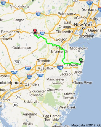 Sunday – Advantage Mike (3-3): Back to the soccer tourney, but I came prepared…..bike on the rack and the plan to ride back home (+/- 75 miles) and run off the bike (10K). Despite not knowing where I was going, riding through a few neighborhoods where it seemed like they had never seen a cyclist before (a little unnerving), and some roads that felt like a washboard on my butt, I made it unscathed, from Neptune, NJ to Hunterdon, unsupported. I was pretty beat (and a little dehydrated) when I got back home, but I managed a 10K on my “hilly route” at what I would consider slightly better than race-pace. So a successful day.